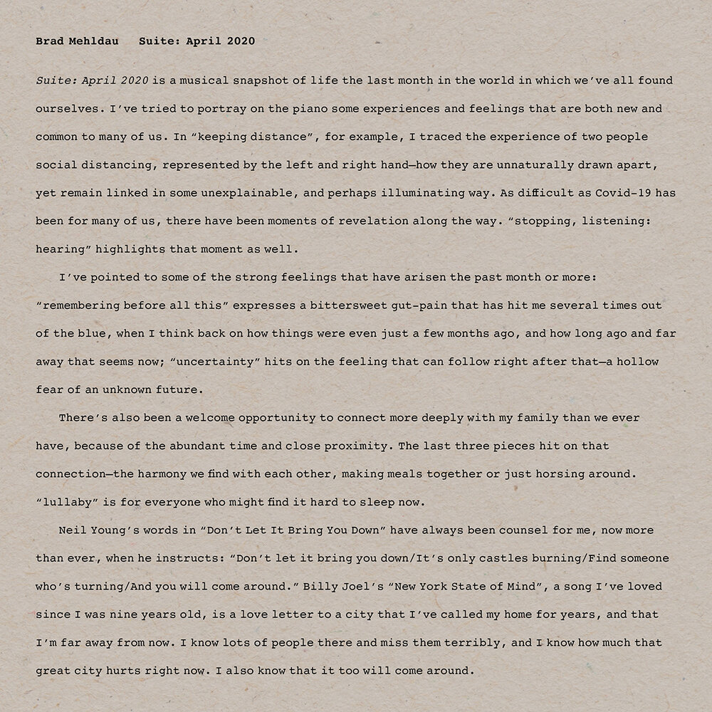 Suite: April 2020 // Brad Mehldau